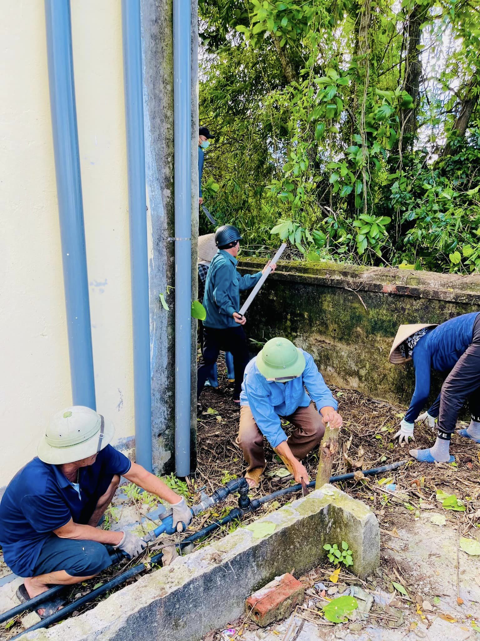 Trường Tiểu học Quốc Tuấn tiếp tục có một buổi lao động phát quang bụi rậm và dọn vệ sinh khu vực đằng sau dãy nhà A, nhà D để phòng chống dịch bệnh và chuẩn bị khai giảng năm học mới cho con em.