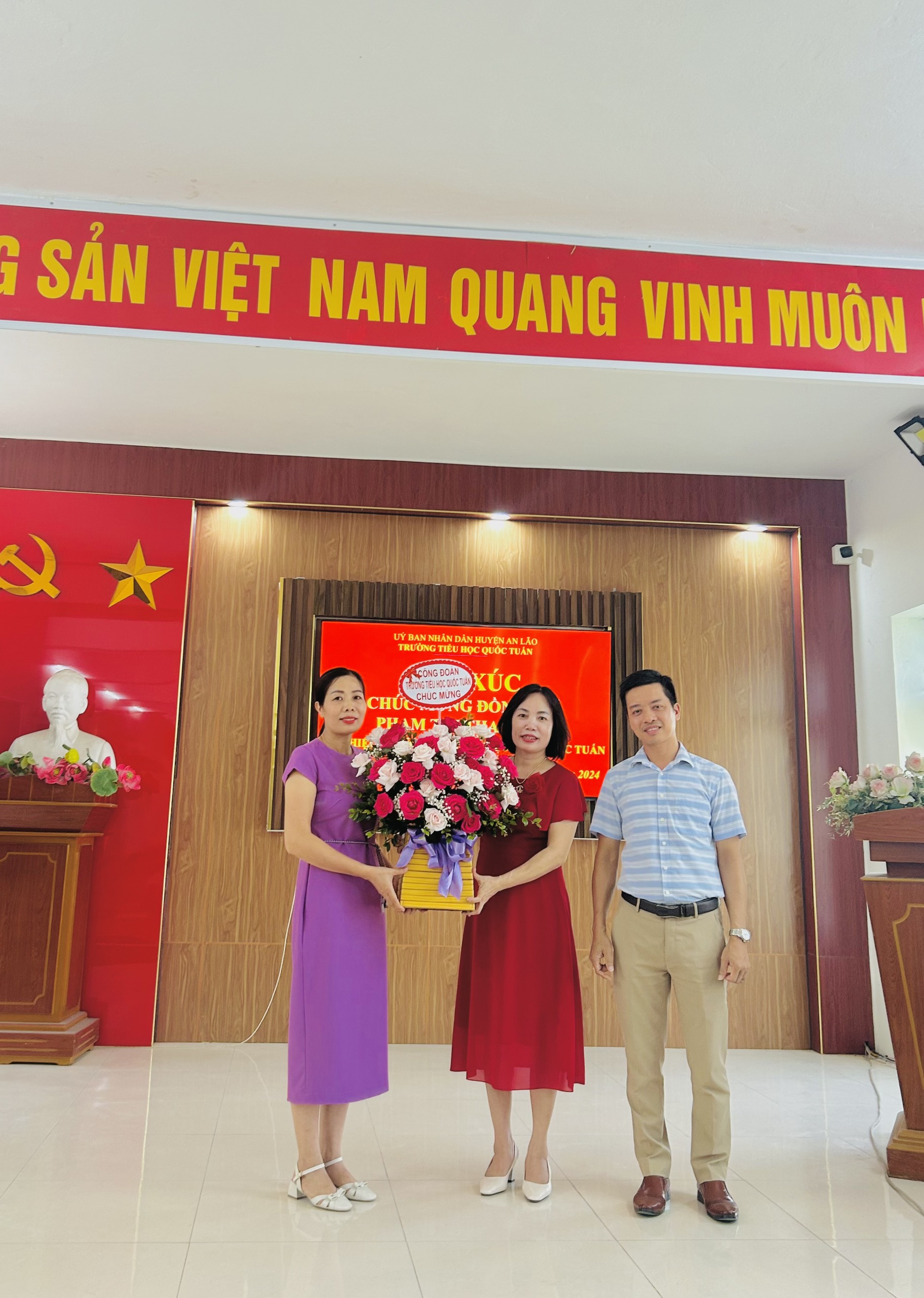 Tiếp xúc chúc mừng đồng chí Phạm Thị Thanh An tân Hiệu trưởng trường Tiểu học Quốc Tuấn- Họp HĐSP tháng 8